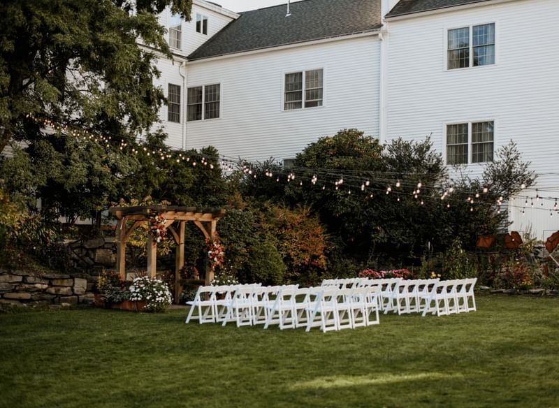 Exchange your vows in a setting that reflects the timeless character of the Harraseeket Inn. Our courtyard offers a beautiful and intimate backdrop for wedding ceremonies, combining classic New England architecture with soft natural light and a sense of quiet privacy. Thoughtfully arranged seating, a simple ceremony focal point, and professional sound support create a polished and welcoming experience for you and your guests.
